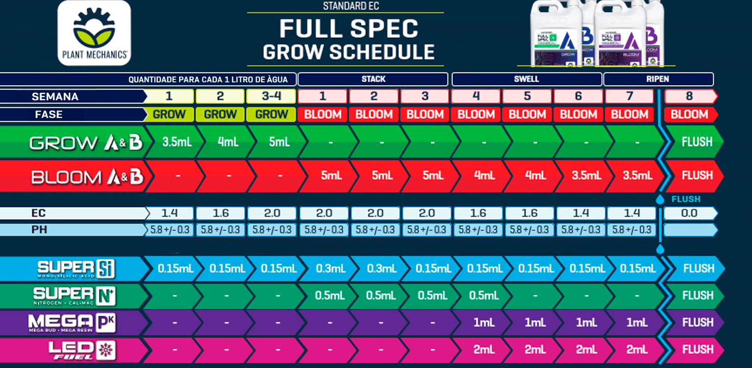 Se o seu objetivo é flores mais compactas, pesadas e de alta qualidade, o Full Spec Bloom A + B oferece tudo o que a planta precisa para expressar seu máximo potencial durante a floração.