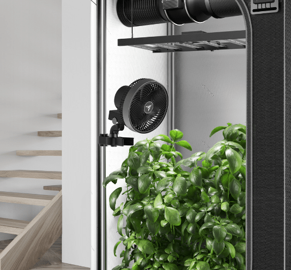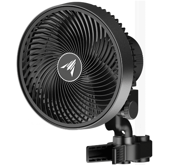 Ventilador de clipe de última geração reprojetado para circulação mais duradoura e personalizada em ambientes de espaço de cultivo.