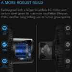 O motor EC sem escovas maior com engrenagens de aço carbono e classificação IP44 foi reprojetado para maximizar a vida útil da oscilação.