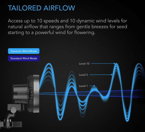 Possui 10 velocidades e 10 modos de vento dinâmicos para simular o fluxo de ar externo para o crescimento ideal das plantas.